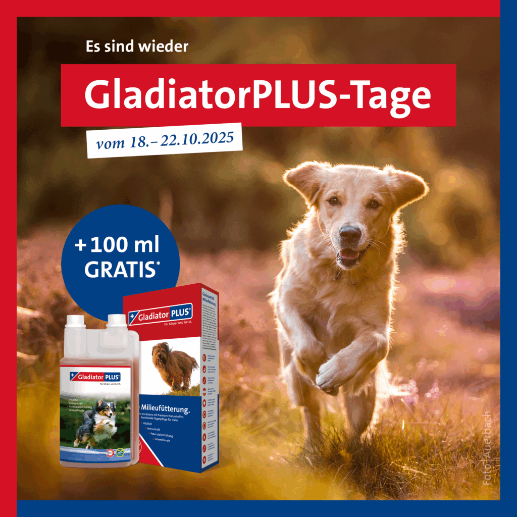 Gönnen Sie Ihrem Tier diese Extra-Unterstützung oder machen Sie jemand anderen eine Freude. Unterstützen Sie Ihr Tier ganzheitlich mit nur einem Schluck pro Tag. Einfach hier im GladiatorPLUS-Shop ** bestellen.